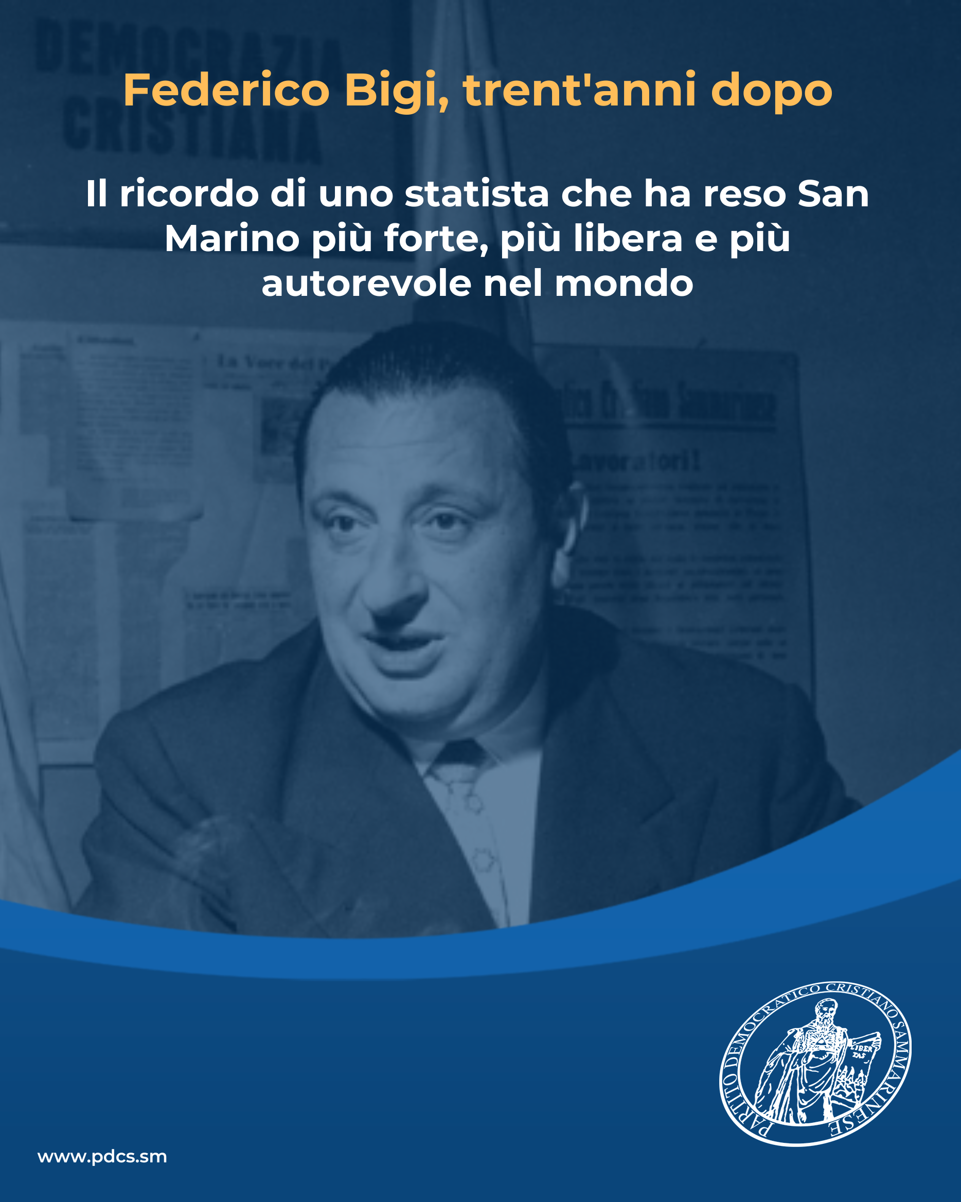 Nel 30° anniversario della morte di Federico Bigi, la memoria pubblica sammarinese è chiamata a rendere omaggio a una delle figure più autorevoli e significative della storia politica e istituzionale del Novecento.