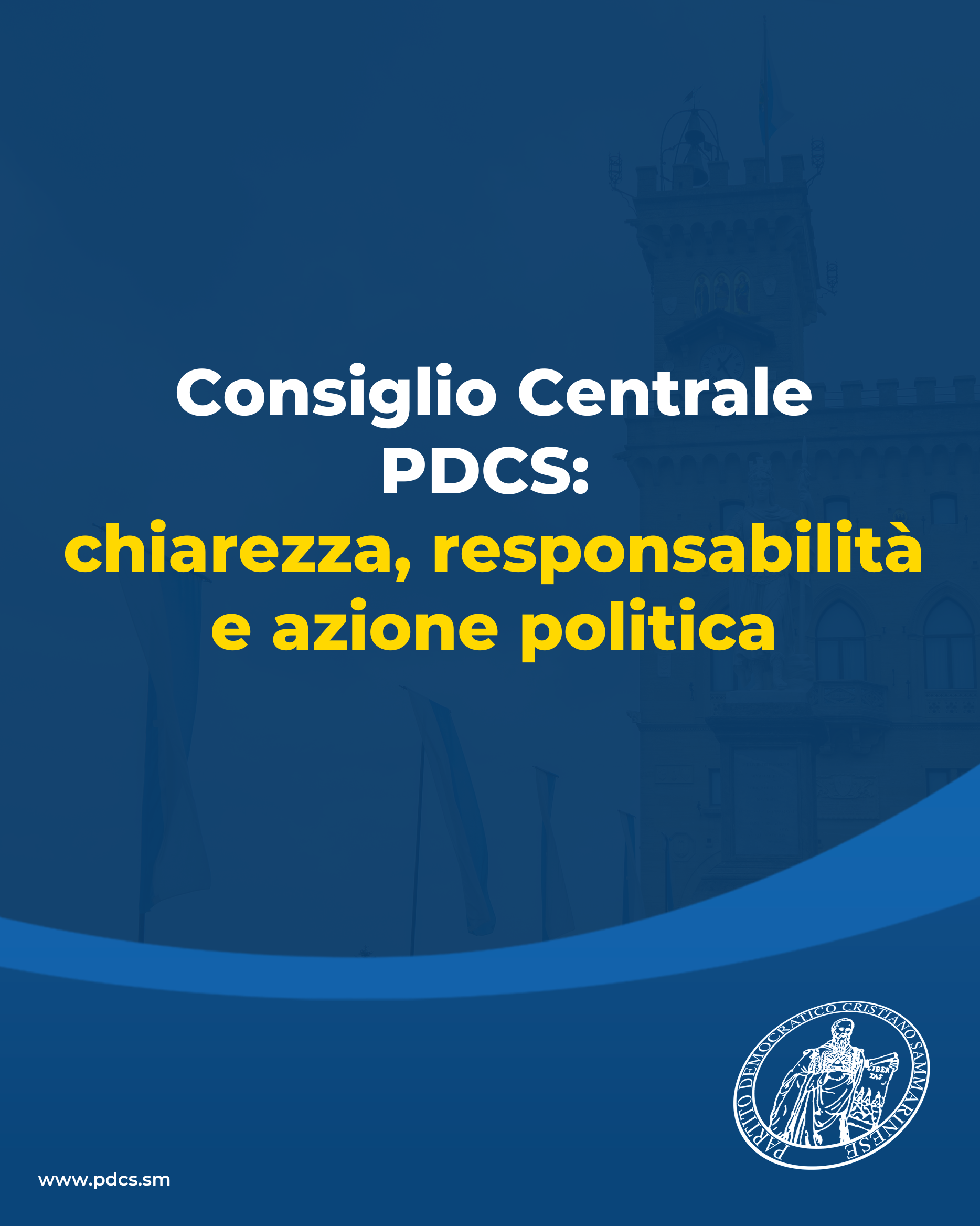 Il Consiglio Centrale del Partito Democratico Cristiano Sammarinese si è riunito ieri sera presso la Sala Montelupo di Domagnano per un approfondito confronto sulla situazione politica attuale e sulle criticità del momento, con l’obiettivo di informare con trasparenza tutti gli aderenti e delineare con nettezza la posizione del Partito, nel rispetto delle istituzioni e delle sedi preposte.