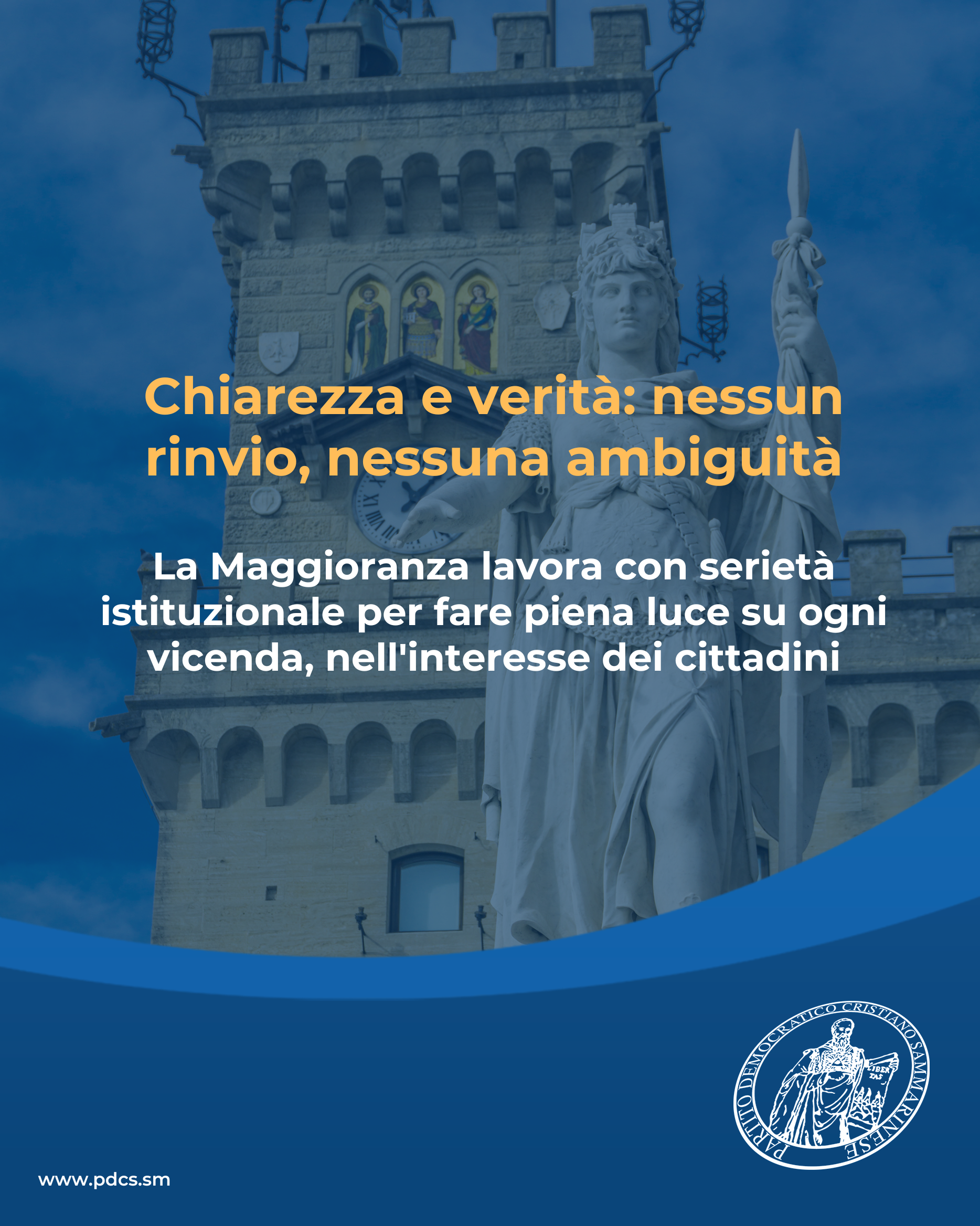 La maggioranza, al contrario, continuerà quindi ad operare con senso delle istituzioni, determinazione e rapidità, affinché ogni elemento utile emerga nel più breve tempo possibile e ogni valutazione possa poggiare su basi solide e nel solo interesse del Paese.